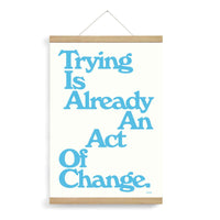 Großformatiges Poster mit dem Motiv 'Trying Is Already An Act Of Change'.