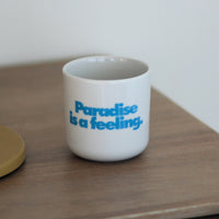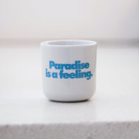 Wunderschöner Becher aus Porzellan (henkellos) mit dem Motiv 'Paradise is a feeling.'