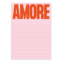 Praktischer Notizblock mit dem Motiv "AMORE" in Rosa.